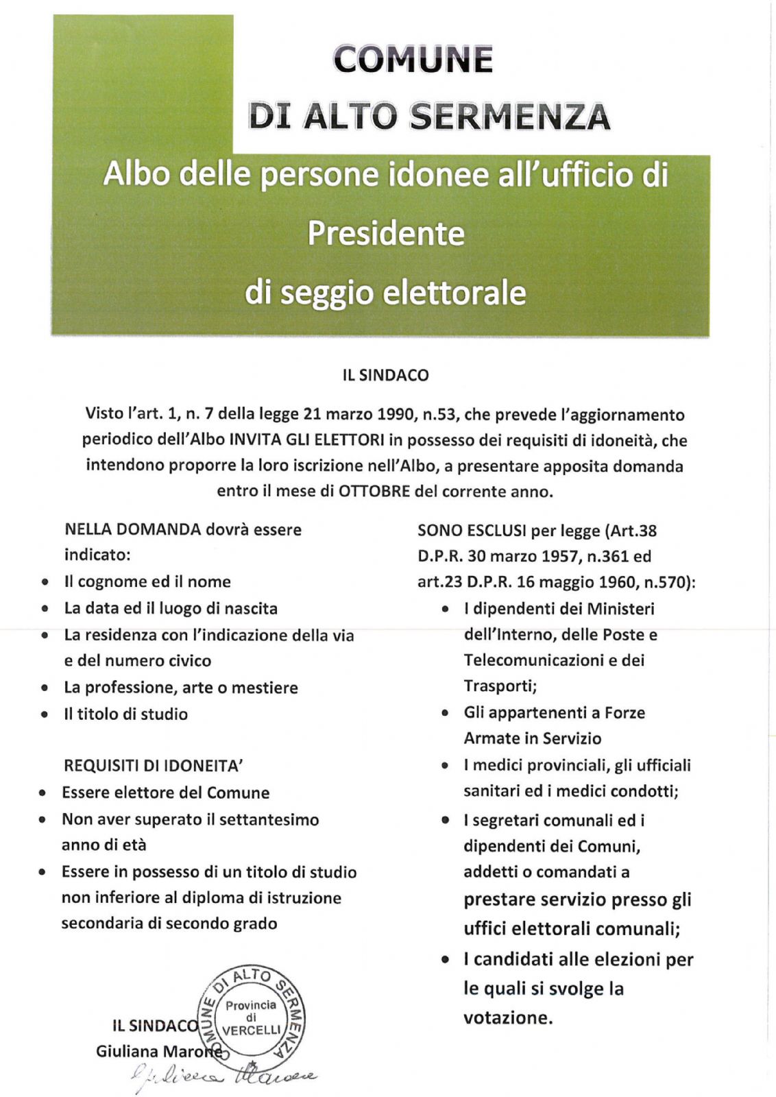 ISCRIZIONE ALBO PRESIDENTI DI SEGGIO