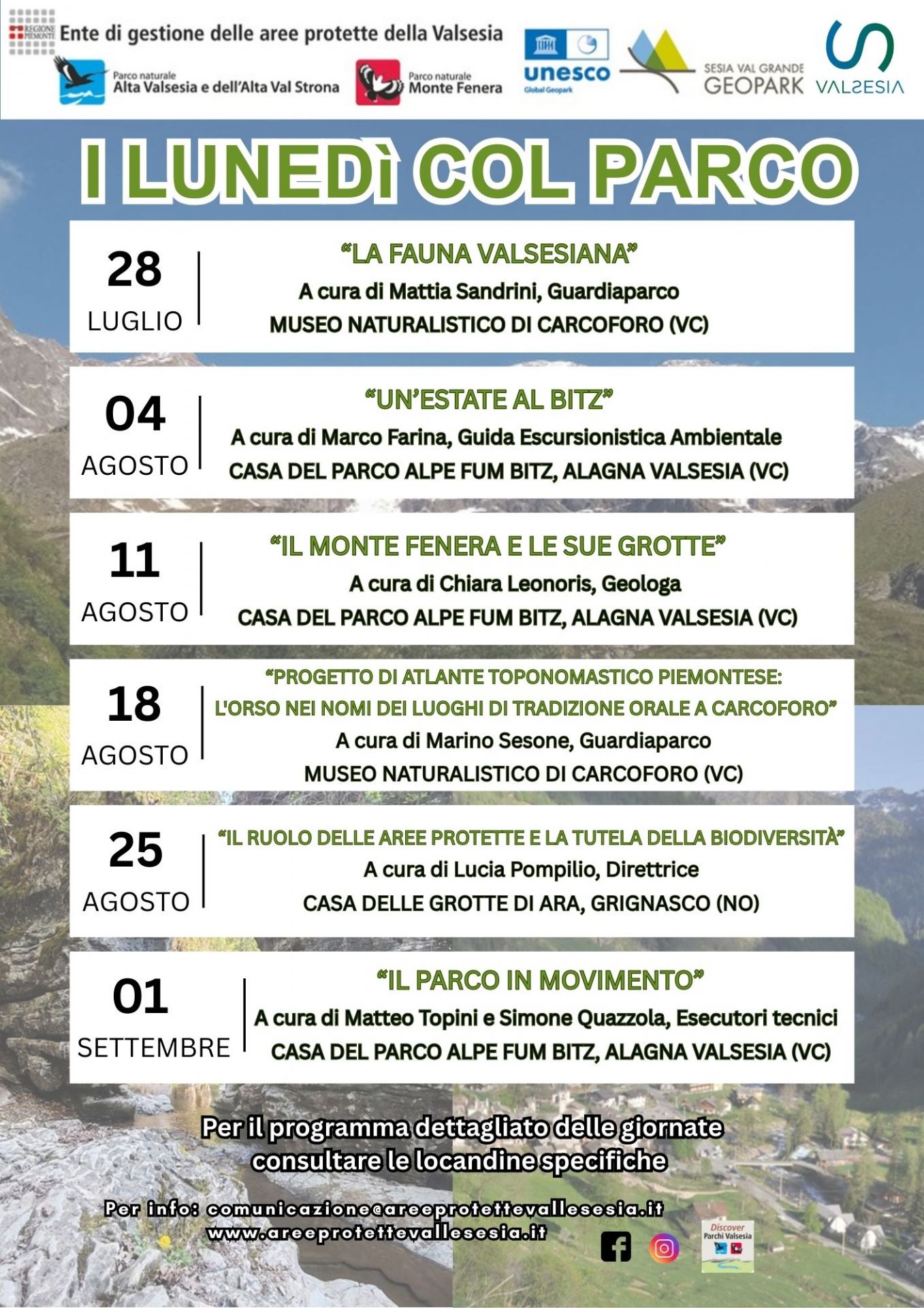 Tra la fine di luglio e i primi di settembre Parchi Valsesia propone 6 lunedì dove lo staff dell'Ente Parco si racconta!