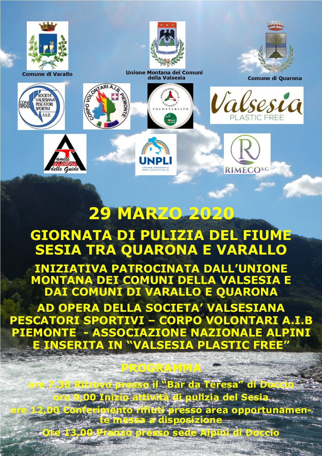 29 MARZO 2020 E' IN PROGRAMMA UNA GIORNATA DI PULIZIA DEL FIUME SESIA TRA QUARONA E VARALLO _ L'EVENTO RIENTRA NEL PROGETTO " VALSESIA PLASTIC FREE"