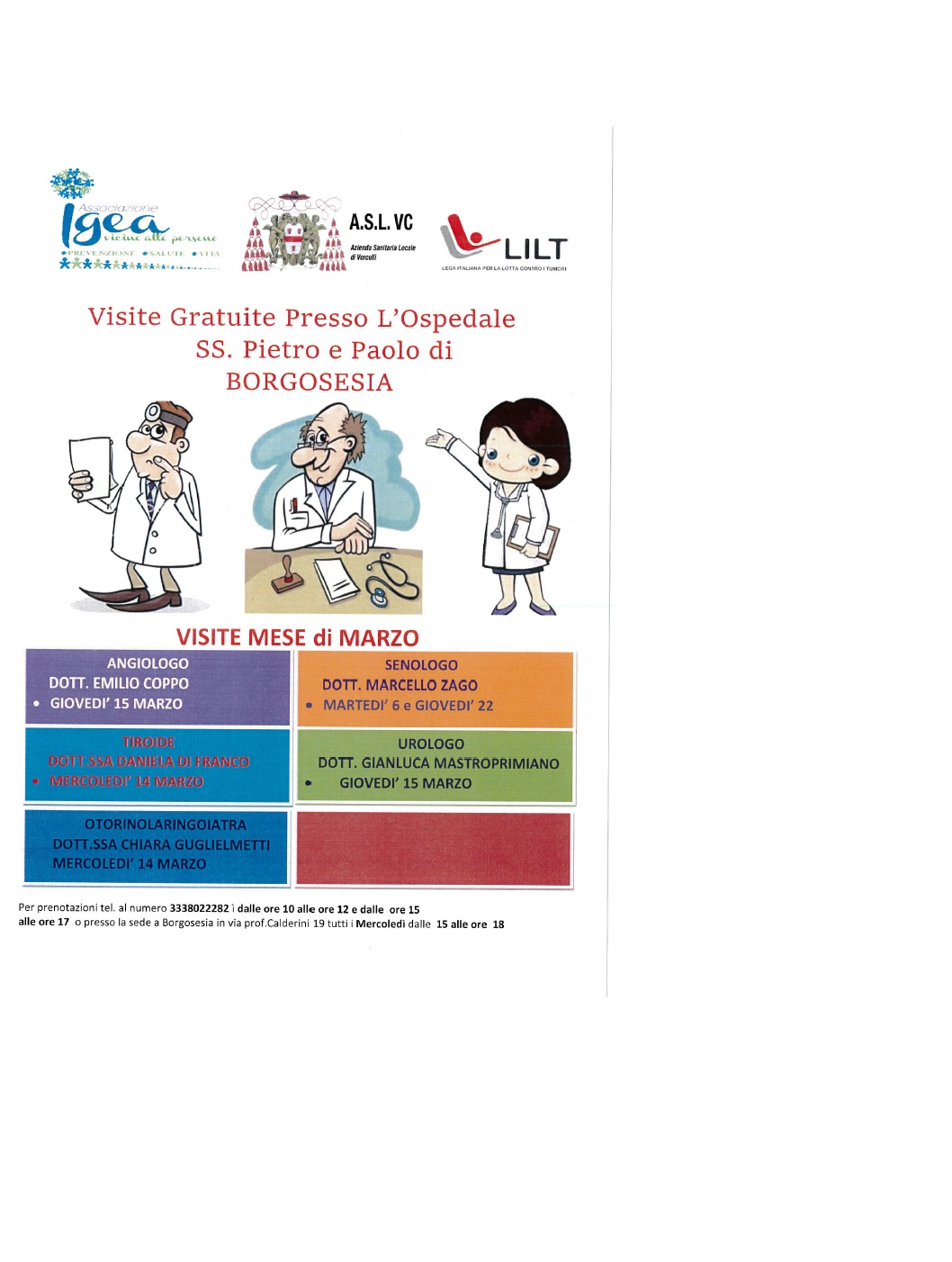 VISITE GRATUITE MESE DI MARZO OSPEDALE SS.PIETRO E PAOLO BORGOSESIA