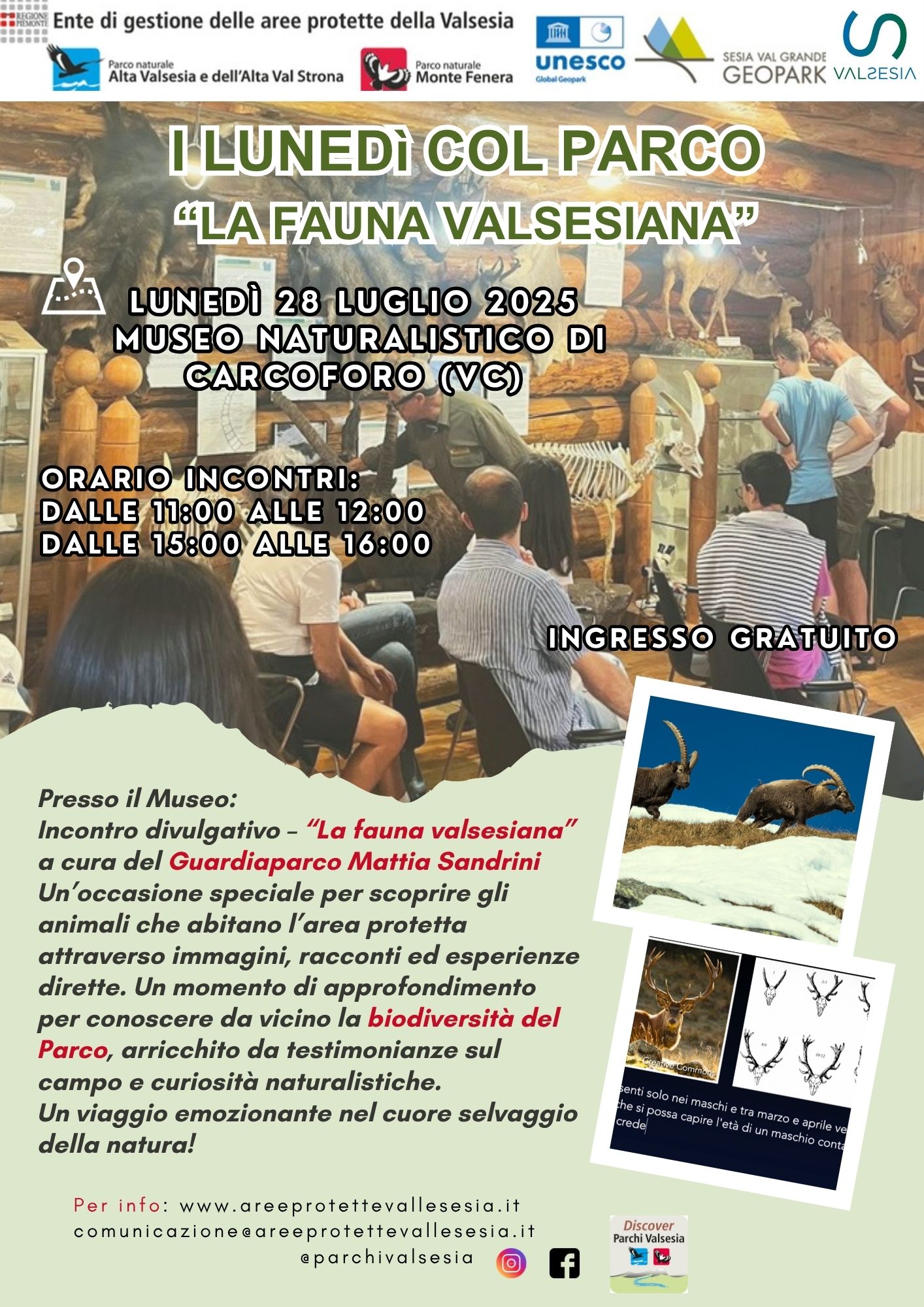 Museo Naturalistico di Carcoforo (VC) Orario incontri: dalle 11:00 alle 12:00 e dalle 15:00 alle 16:00